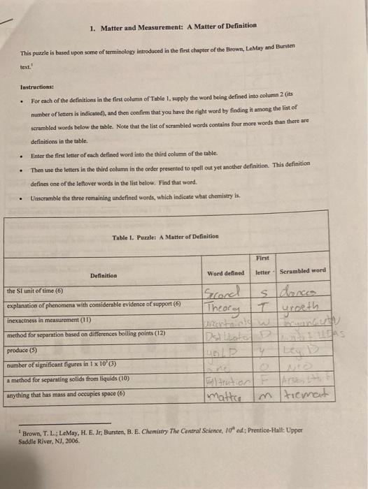 Solved 1 Matter And Measurement A Matter Of Definition Chegg Com