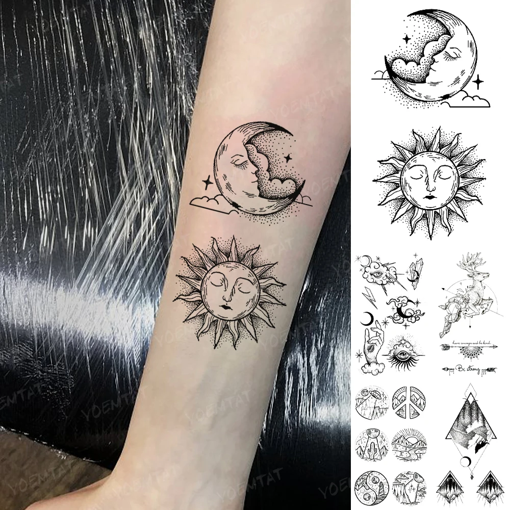 Waterproof Temporary Tattoo Sticker Moon Sun Black Line Geometric Flash Tatoo Woman Man Child Arm Ankle Body Art Fake Tatto Cool Temporary Tattoos Aliexpress